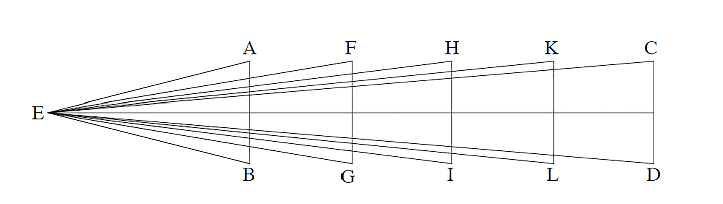 Fig 5: A diagrammatic representation of Al-Kindi’s geometric proof for the vanishing point in linear perspective